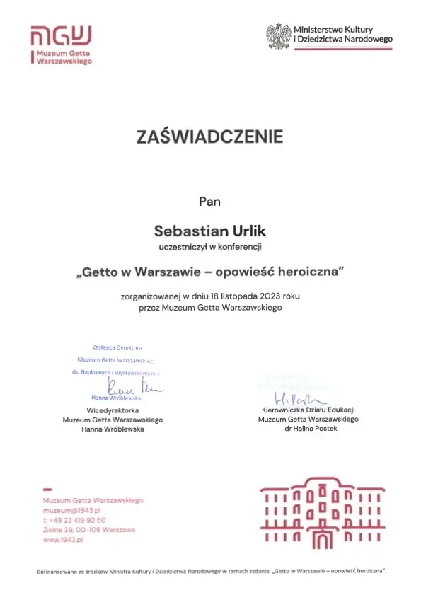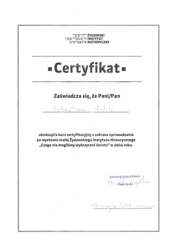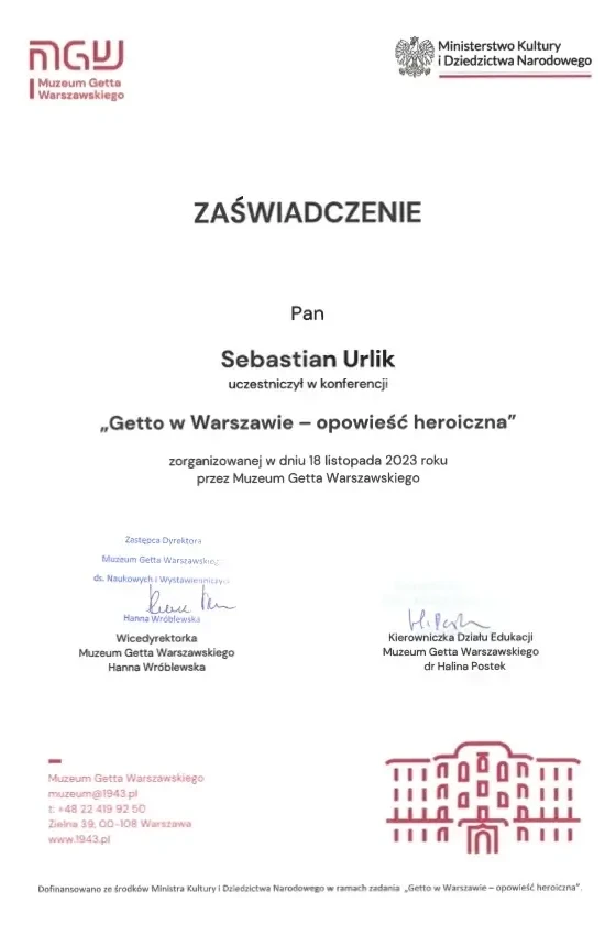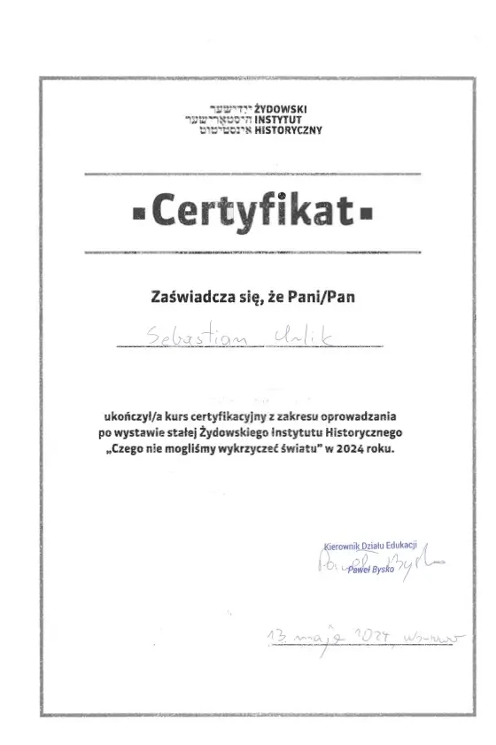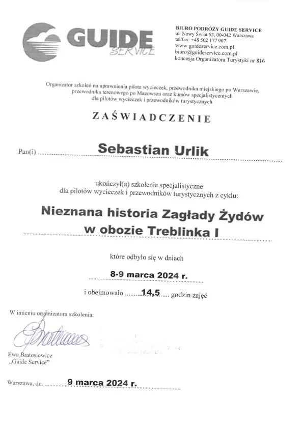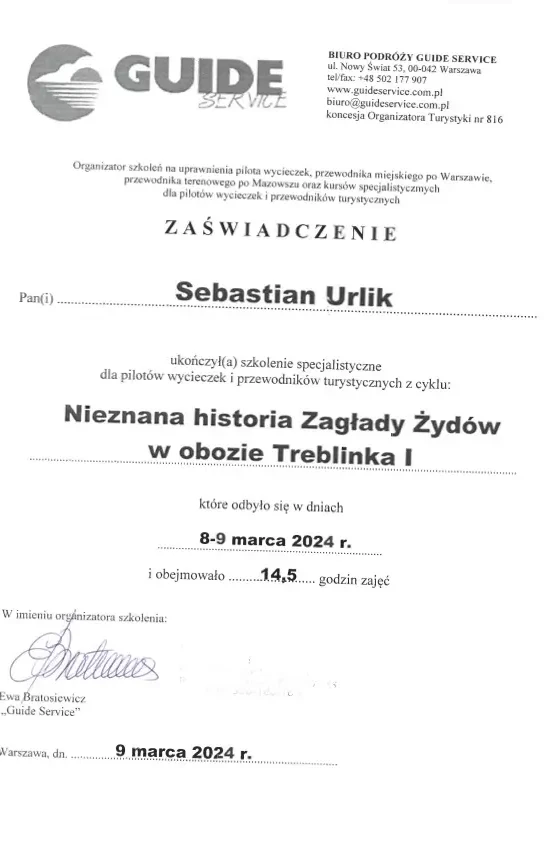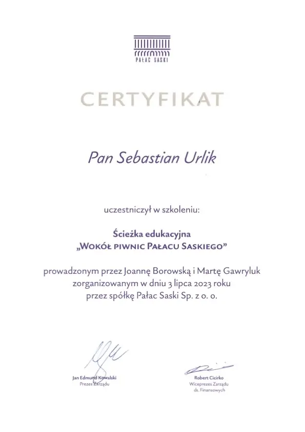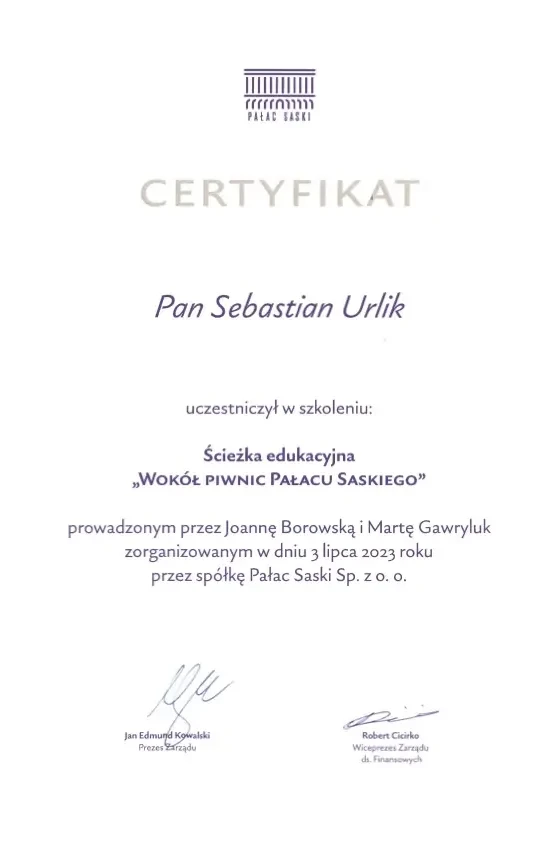 “Sebastian Urlik cooperated with us as Warsaw city guide and guided twice the international Board oof the British Company Segro. Mr. Urlik very successfully raised interest in Warsaw which resulted in very positive opinions of our Guests after the guided walks and series of in-depth question. We warmly recommend Mr. Sebastian Urlik as a qualitative city guide”